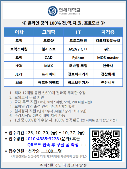- 한국인터넷교육방송 주최 무료 온라인강의 안내(~10.27.)